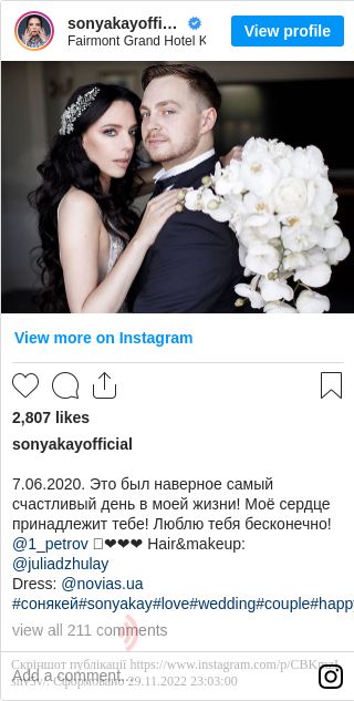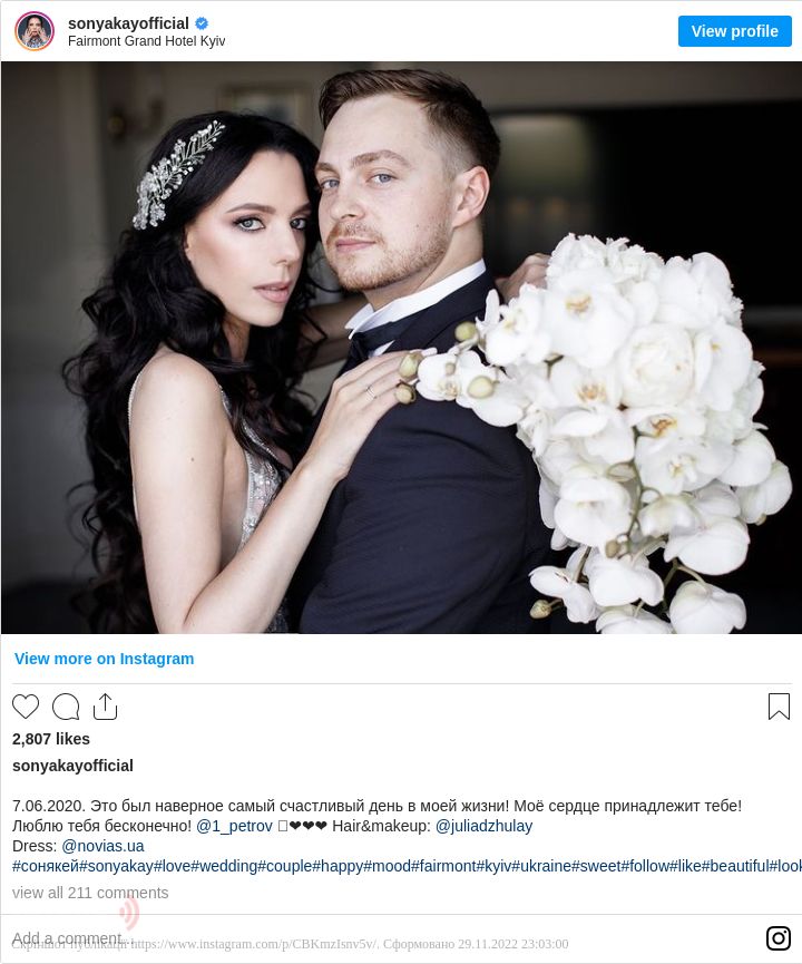 Зовсім недавно Соня Кей зіграла весілля з хокеїстом збірної України Олегом Петровим. Торжество пройшло в елітному київському готелі Fairmont, але гостей було небагато. Справа в тому, що незадовго до весілля помер батько нареченої, та й пандемію коронавірусу ніхто не відміняв.