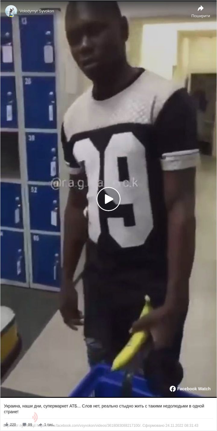 В українському супермаркеті чоловік ударив по обличчю африканця і змусив його їсти банан.