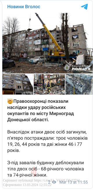 У ніч на 13 березня росіяни завдали авіаудару по будинках у Мирнограді.