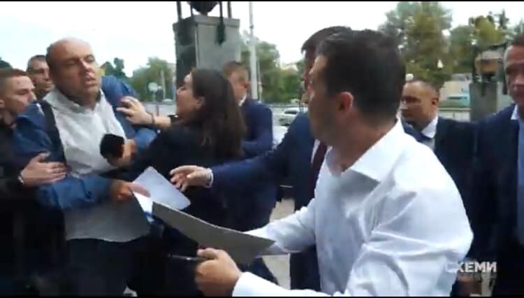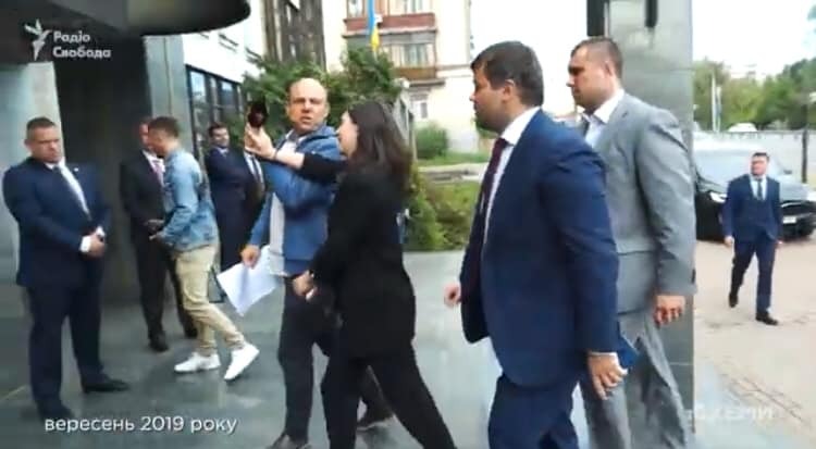 Під час спроби взяти коментар Андрушкові почала заважати прес-секретар президента Юлія Мендель, а також охорона.