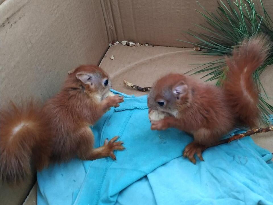 Як виявилось, мати-білка загинула під колесами авто, тому піклування на себе взяв весь колектив підрозділу. Більчакам приблизно 2-3 місяці.
