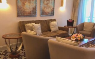 Зазначається, що у даному номері є вітальня, де можна приймати гостей за обідом, і окрема їдальня із персональною кухнею, невеликий кабінет, декілька ванних кімнат.