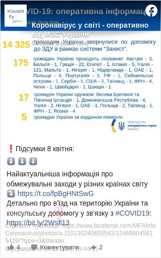 До дипломатичних установ України у зв’язку з поширенням коронавірусу у рамках програми «Захист» звернулися 14 325 громадян.