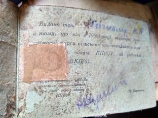 Також знайши замотаний в папері військовий квиток 1948 року одного із співробітників НКВС, який «намагався прорватися до лав УПА».