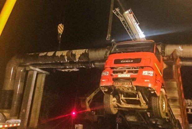 У ніч на середу, 14 листопада, самоскид компанії «СМУ 84», що працює на будівництві підходів до залізничного мосту через Керченську протоку, рухався Феодосійським шосе з піднятим кузовом, у результаті чого пошкодив дві труби місцевої ТЕЦ, зсунувши їх до проектної позначки.