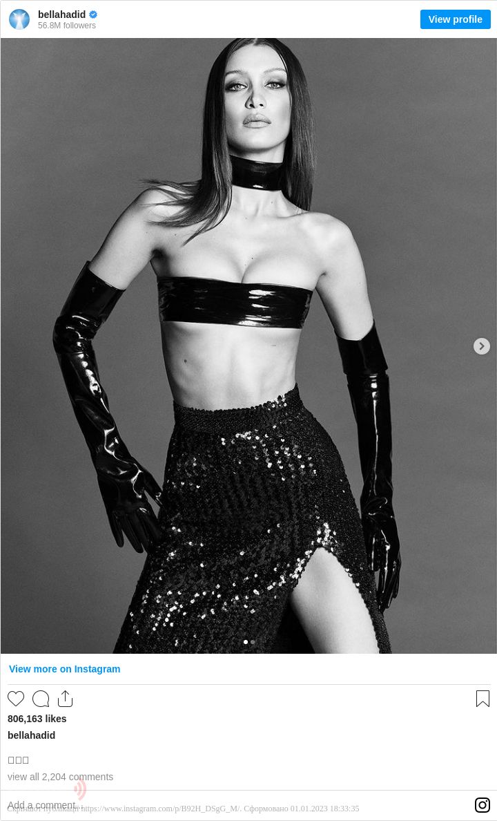 Так, Хадід постала у доволі спокусливому образі, акцентувавши на бюсті.