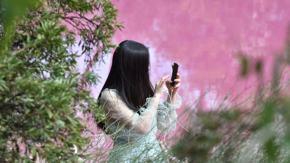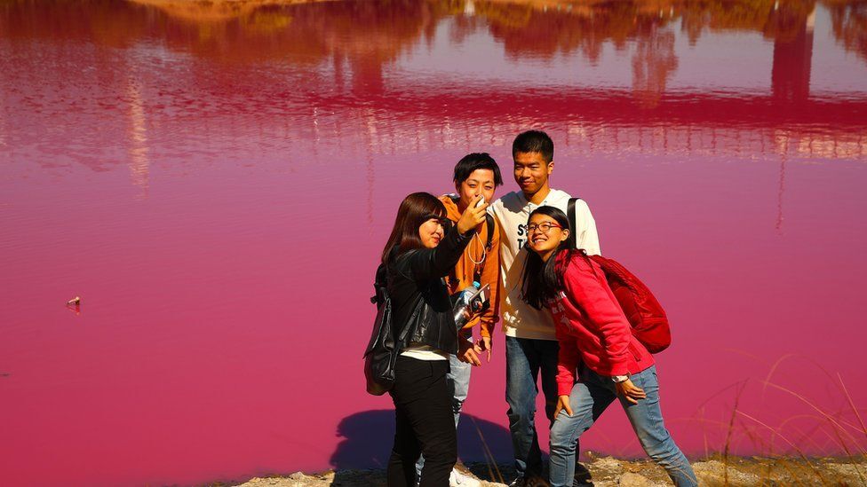 Щоб сфотографувати незвичне озеро сюди масово їдуть місцеві туристи. Дехто навіть одягається у рожевий колір у тон води.