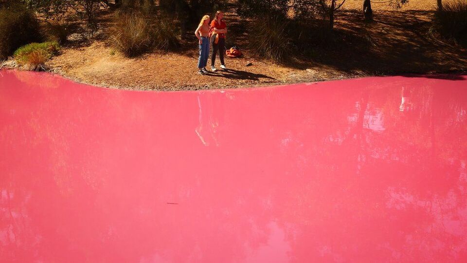 "Солоне озеро Вестгейт за останні тижні стало яскраво-рожевим. Яскравий відтінок обумовлений великою кількістю сонячного світла, нечастими опадами і теплом. В цих умовах водорості озера виробляють червоний пігмент під назвою бета-каротин", - йдеться в повідомленні.