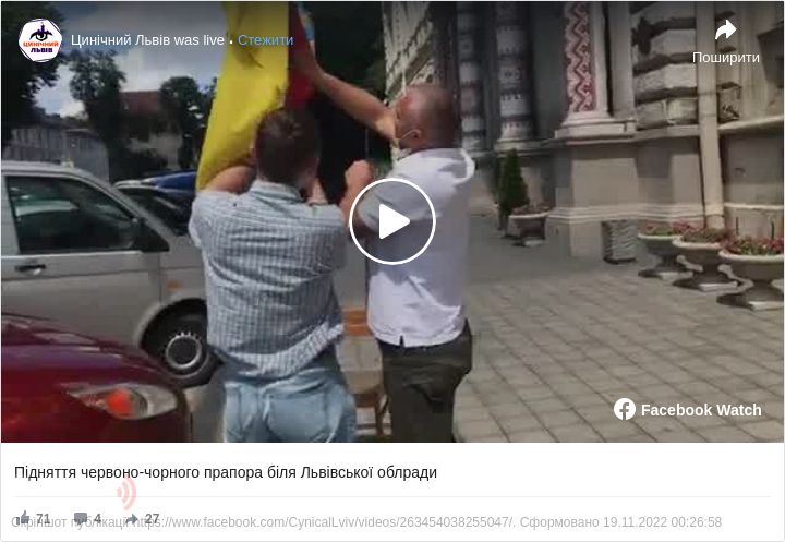 Зазначимо, понад два роки тому Львівська облрада затвердила перелік днів, в які на будівлях обласної адміністрації та ради, а також органів місцевого самоврядування на Львівщині вивішуватимуть червоно-чорний прапор.