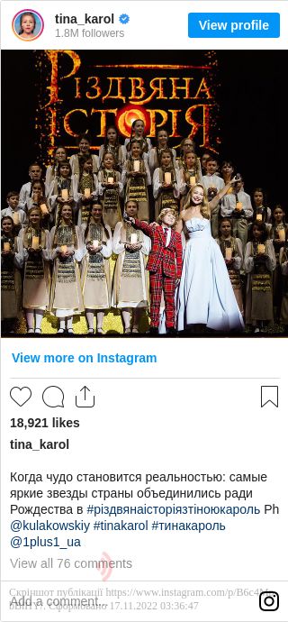 «Коли диво стає реальністю: найбільш яскраві зірки країни об'єдналися заради Різдва», - написала вона.