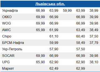 Вартість пального на Львівщині
