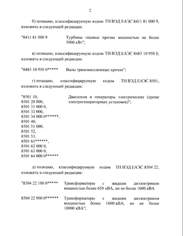 У список входять, зокрема, трубна продукція, електричні генератори, деякі види трансформаторів і трансмісійні вали.