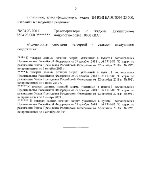 Згідно з текстом, заборона не поширюється на товари, «які ввозяться з метою завершення митних процедур переробки за межами митної території та тимчасового вивезення».
