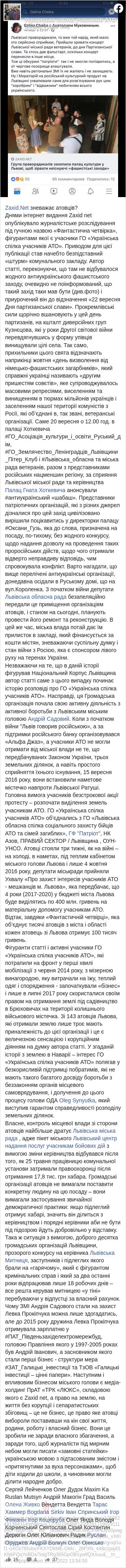 Натомість за тиждень вони опублікували “розслідування”, в якому “розповіли більше про членів групи, які голіруч наважилися штурмувати комунальний заклад культури”. У цій статті видання міського голови згадало бізнес учасників АТО, їхнє можливе знайомство зі знаними львівськими бізнесменами і чомусь навіть приплело до конфлікту голову ОДА.
