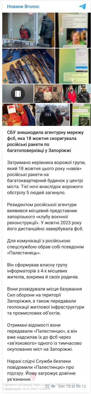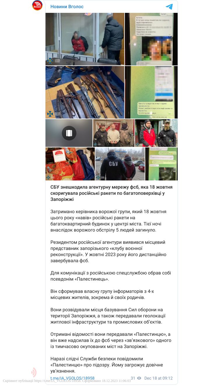 У результаті спецоперації затримано керівника агентурної мережі ФСБ, який 18 жовтня скоригував російські ракети по багатоповерхівці у Запоріжжі.