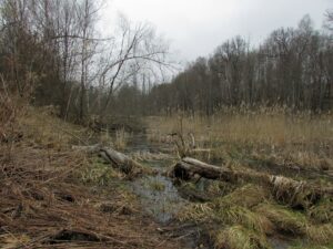 13 км лісами і долами попри боброві озера, через ще цілком сонний ліс, під гелгіт чорних круків у небі, стрекіт шпачні та витьохкування щигликів.