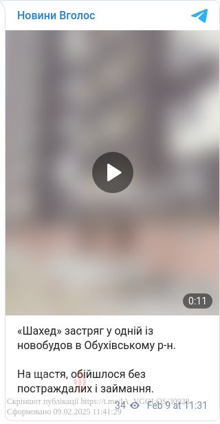 Один з «Шахедів» поцілив у новобудову в Обухівському районі столиці.