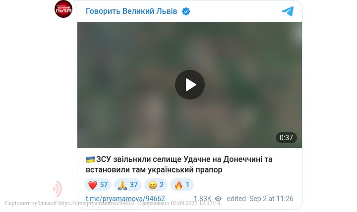 Українські військові провели успішну операцію в селищі Удачне на Донеччині та встановили там державний прапор.
