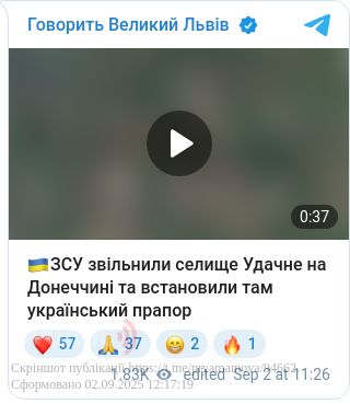 “Зачистка селища Удачне на Донеччині та встановлення прапора. Покровський напрямок. Слава Україні!”, – йдеться у повідомленні військових.