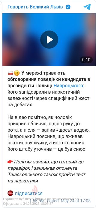 Кандидат у президенти Польщі Кароль Навроцький потрапив у скандал під час передвиборчих дебатів. Його поведінка викликала підозри у соцмережах щодо можливого вживання наркотиків.
