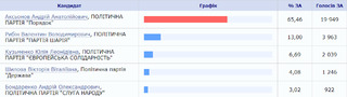 З великим відривом там переміг скандальний мер міста Добропілля Андрій Аксьонов. Він набрав 65,6 % голосів.