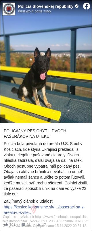 «Обидва вони активно протидіяли собаці, однак у них не було шансів. Напевно, згодом втікачі пошкодували про все», – повідомляє відомство у своєму Facebook.