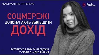 Про основні тренди ринку SMM та перші кроки у кар'єрі, розцінки та робочі завдання в етері програми «Актуальне інтерв'ю» з Ігорем Солотюком розповіла SMM-фахівець та експертка з онлайн-продажів Сандра Вишня.