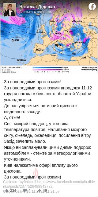 Про це у своєму Facebook написала народний синоптик Наталка Діденко.