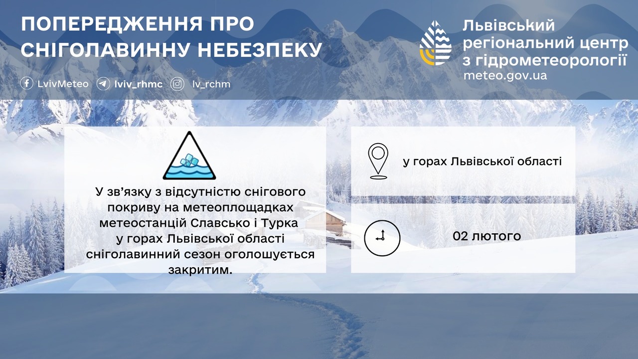 Рішення про закриття сезону прийняли на основі даних з ключових високогірних метеостанцій області. У зв’язку з потеплінням та відсутністю снігу на метеомайданчиках таких пунктів спостереження як: