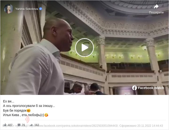 Відповідне віде за його участі з Верховної Ради вона оприлюднила на своїй сторінці у «Фейсбуці».