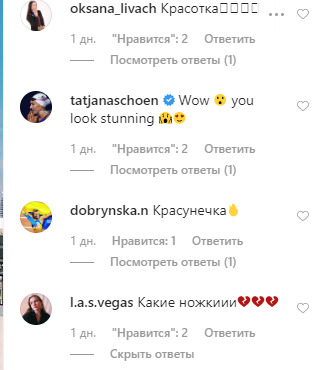 У відповідь користувачі захоплено висловлювалися про її фігуру та стрункі ніжки.