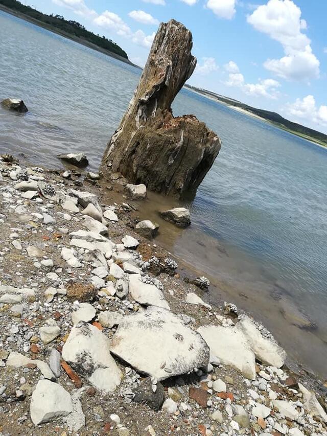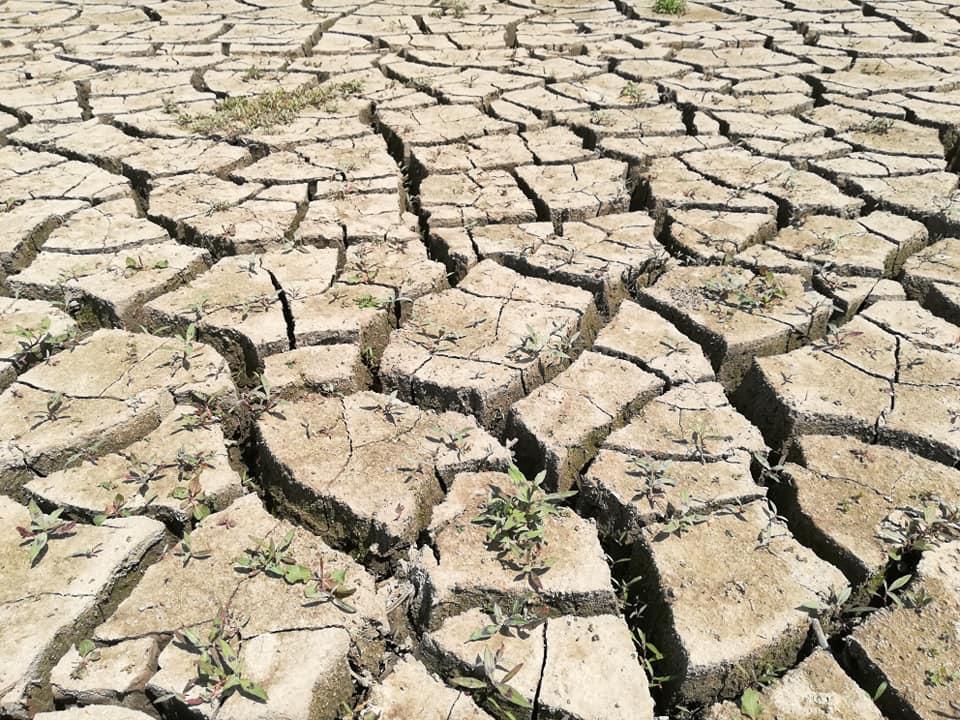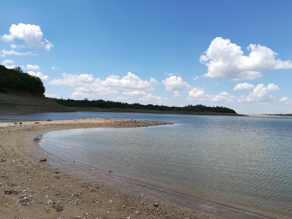 На фото добре видно, що Сімферопольське водосховище висихає.
