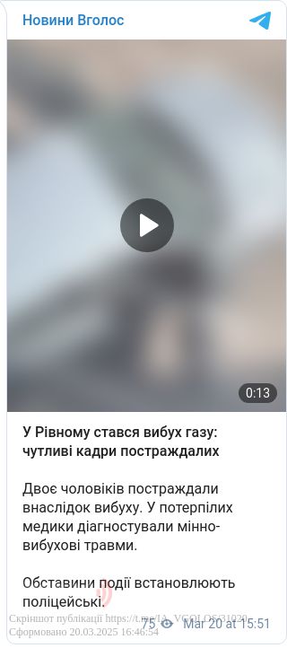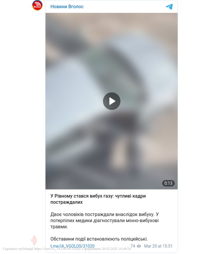 20 березня у центрі Рівного в автомобілі здетонував саморобний вибуховий пристрій. Постраждали двоє людей. Подію правоохоронці кваліфікували як теракт.