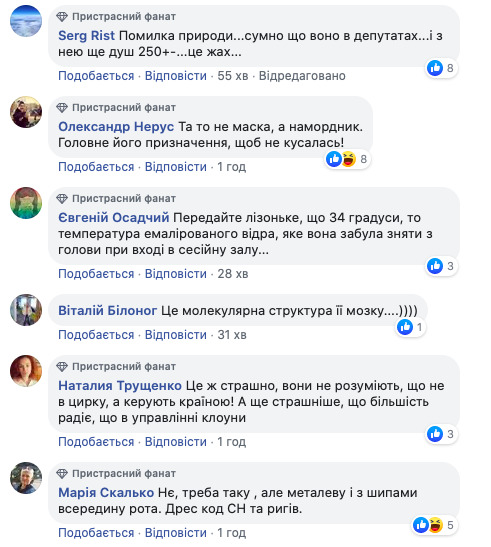Народна депутатка України від «Слуги народу» Єлизавета Богуцька прийшла до Верховної Ради у захисній масці, яка більше схожа на авоську.