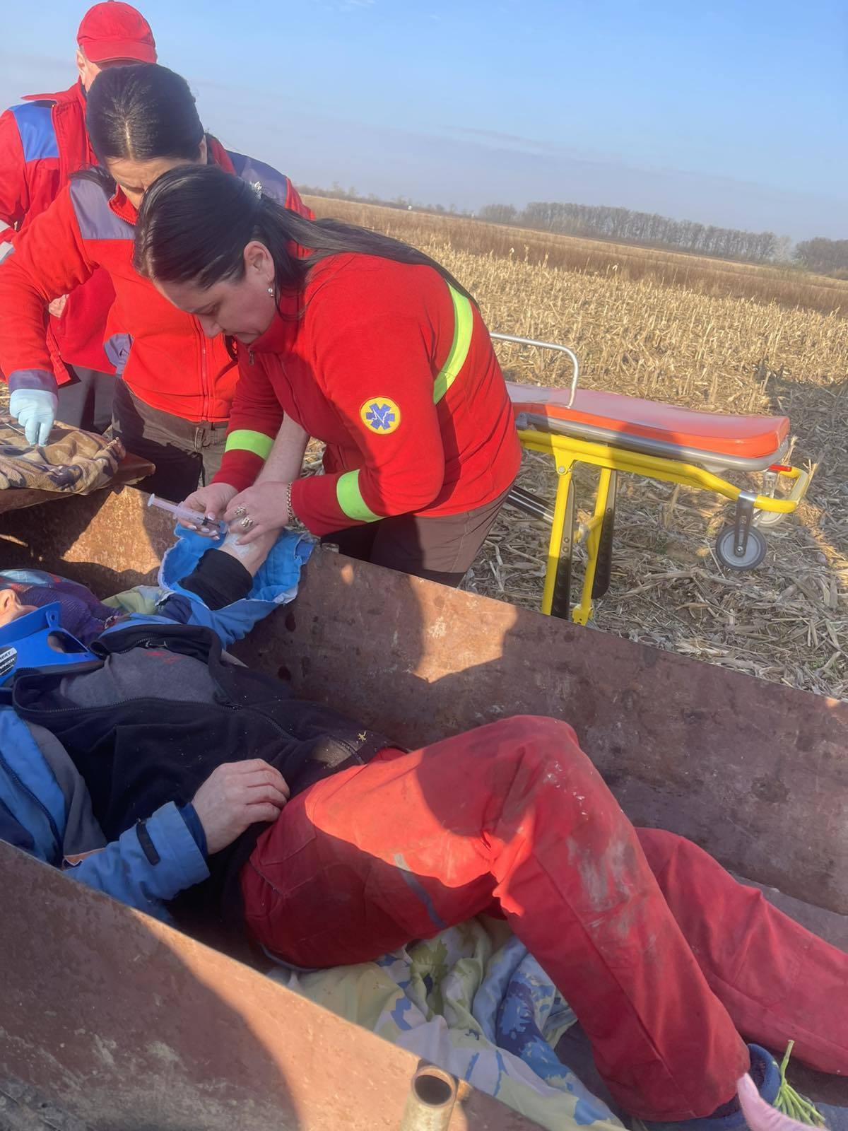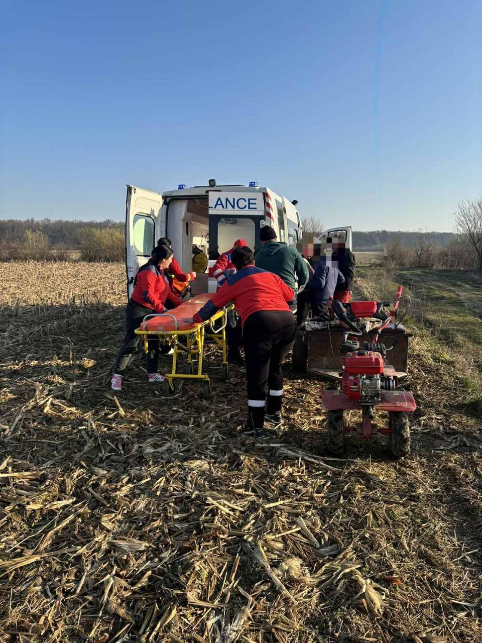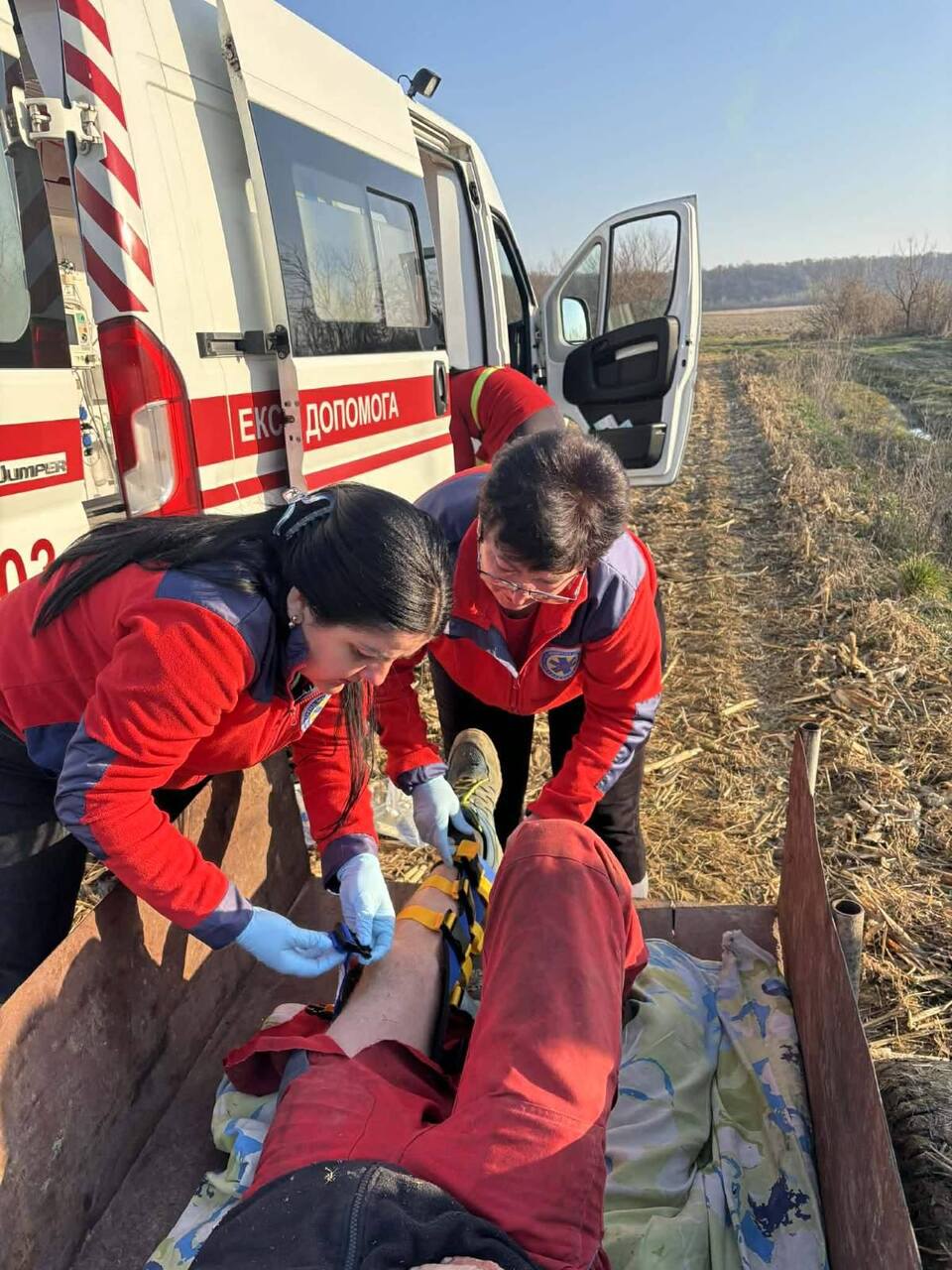 Коли бригада прибула на місце, з’ясувалося, що знайомі вже намагалися вивезти травмованого на причепі мотоблока. Фахівці негайно зупинили цей процес, аби запобігти додатковим ушкодженням, і розпочали інтенсивну терапію прямо на місці події.