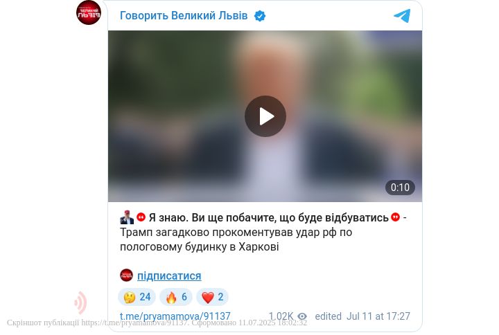 Президент США Дональд Трамп лаконічно і неоднозначно відреагував на чергову атаку Росії проти мирного населення України, цього разу — на пологовий будинок у Харкові.