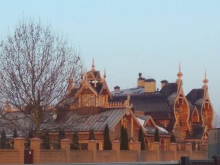 На ділянці зведений величезний палац, який схожий на російську церкву XVII століття. Маєток у вигляді дерев'яного зрубу і куполами розташований під охороною.