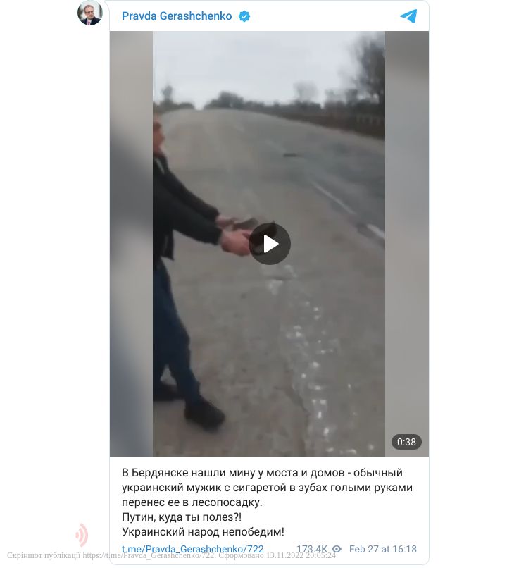 Інцидент стався в місті Бердянськ. Про це повідомив у Telegram та додав відповідне відео радник міністра внутрішніх справ Антон Геращенко.