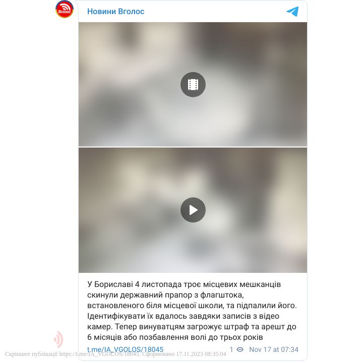На Львівщині місцеві жителі скинули державний прапор з флагштока та підпалили його. Відео злочину з'явилося в мережі. Поліція відкрила кримінальне провадження.