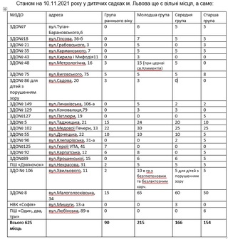 Нижче можна переглянути актуальну інформацію щодо вільних місць в садочках.