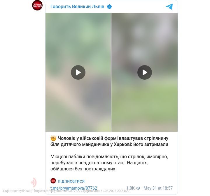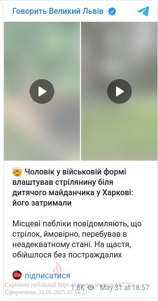 У суботу, 31 травня, у Харкові невідомий чоловік у військовій формі відкрив стрілянину в житловому районі міста.