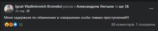 Кромський розповів, що його зупинили на станції метро Академіка Павлова, а потім відпустили.