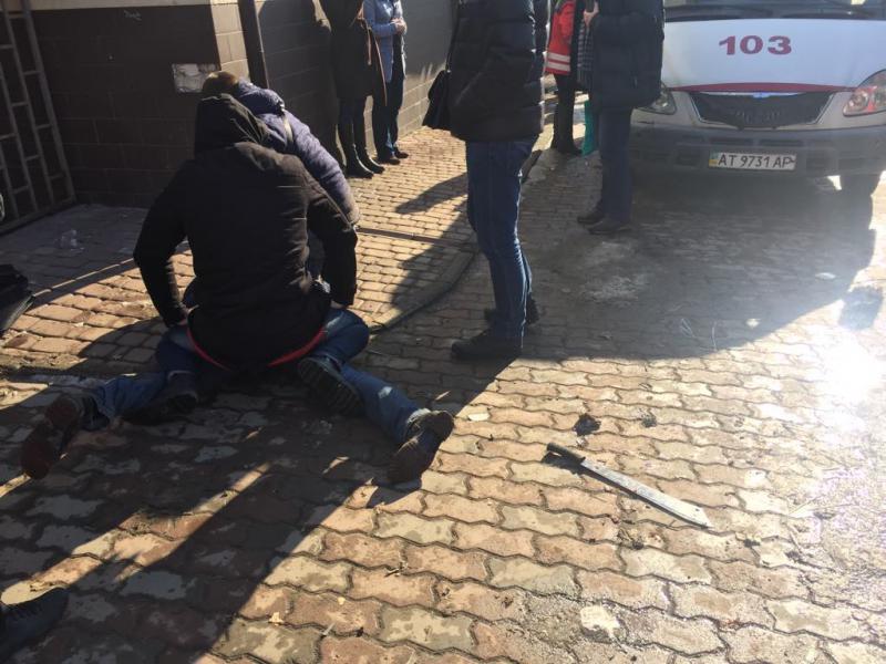 Під час затримання зловмисник поранив ножем поліцейського, ударивши його ножем в обличчя. Потерпілого правоохоронця забрала карета «швидкої допомоги».