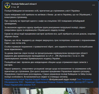 Група невідомих осіб влаштувала стрілянину в кафе у місті Українка, що на Київщині.