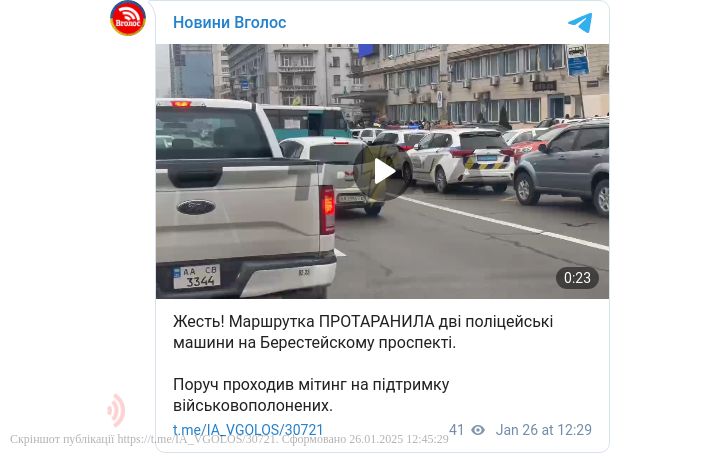 Маршрутка протаранила дві поліцейські машини на Берестейскому проспекті.