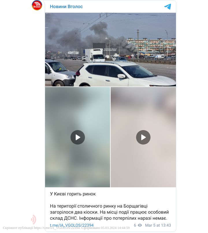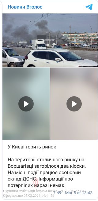 У вівторок, 5 березня, у Києві на території ринку на Борщагівці сталось займання.