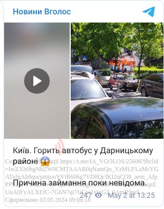 «У Дарницькому районі, біля РАЦСу, на ходу спалахнув автобус. Скоріш за все - комунальний», - йдеться у повідомленні. Про постраждалих не повідомляють.