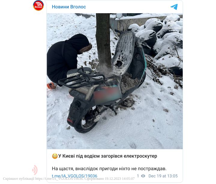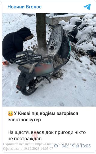 Днями на лінію 112 надійшов виклик про пожежу у Святошинському районі. Заявник розповів, що рухався на електроскутері та його транспортний засіб раптово загорівся.