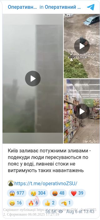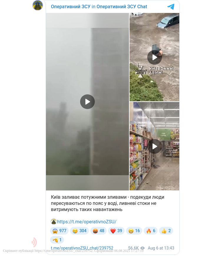 Сильна злива, град і шквальний вітер — такі наслідки негоди накрили Київ та передмістя вдень 6 серпня.