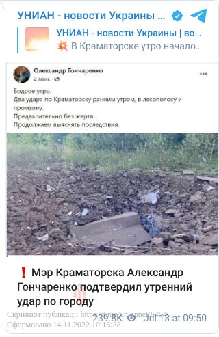 Про це повідомив мер Краматорська Олександр Гончаренко.